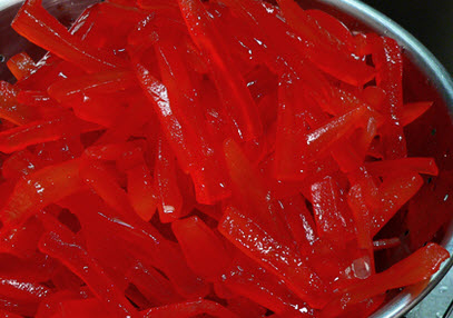- On the 4th day, place the cucumber cubes and the syrup liquid into a large stockpot and boil the entire combined mixture for about 5 minutes.